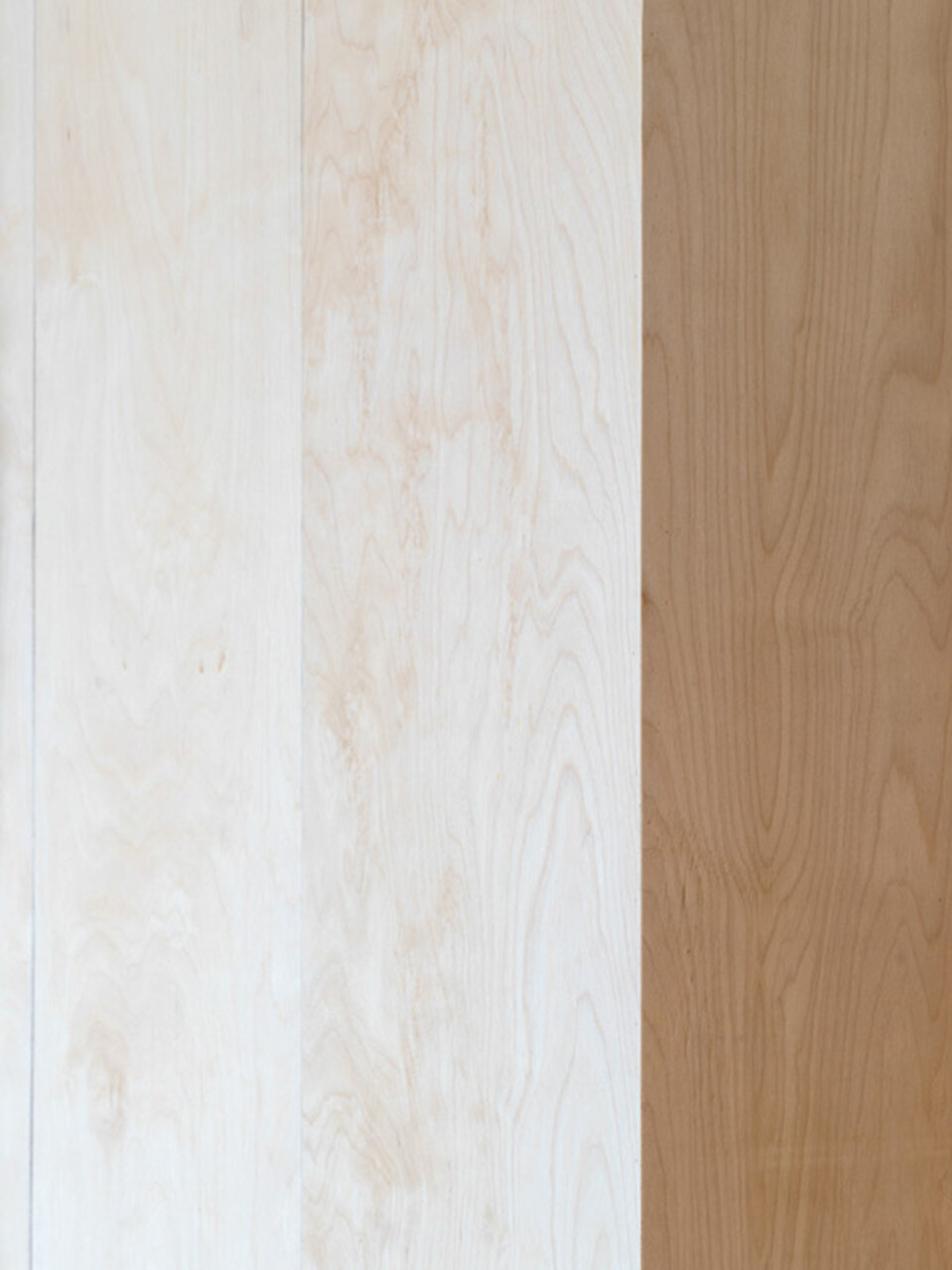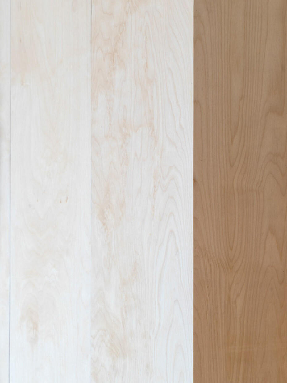 These interventions draw on the seaside location in their form, with bathing-hut pitched roofs, and Scandinavian influences with the choice of a single natural material throughout: birch plywood.