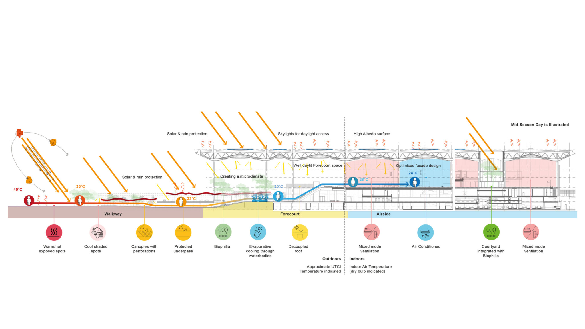 Energy demand is minimised through intelligent passive design elements, responsive to both local climate and human behaviour. Renewable power generation is an integral part of the overall masterplan for the airport.