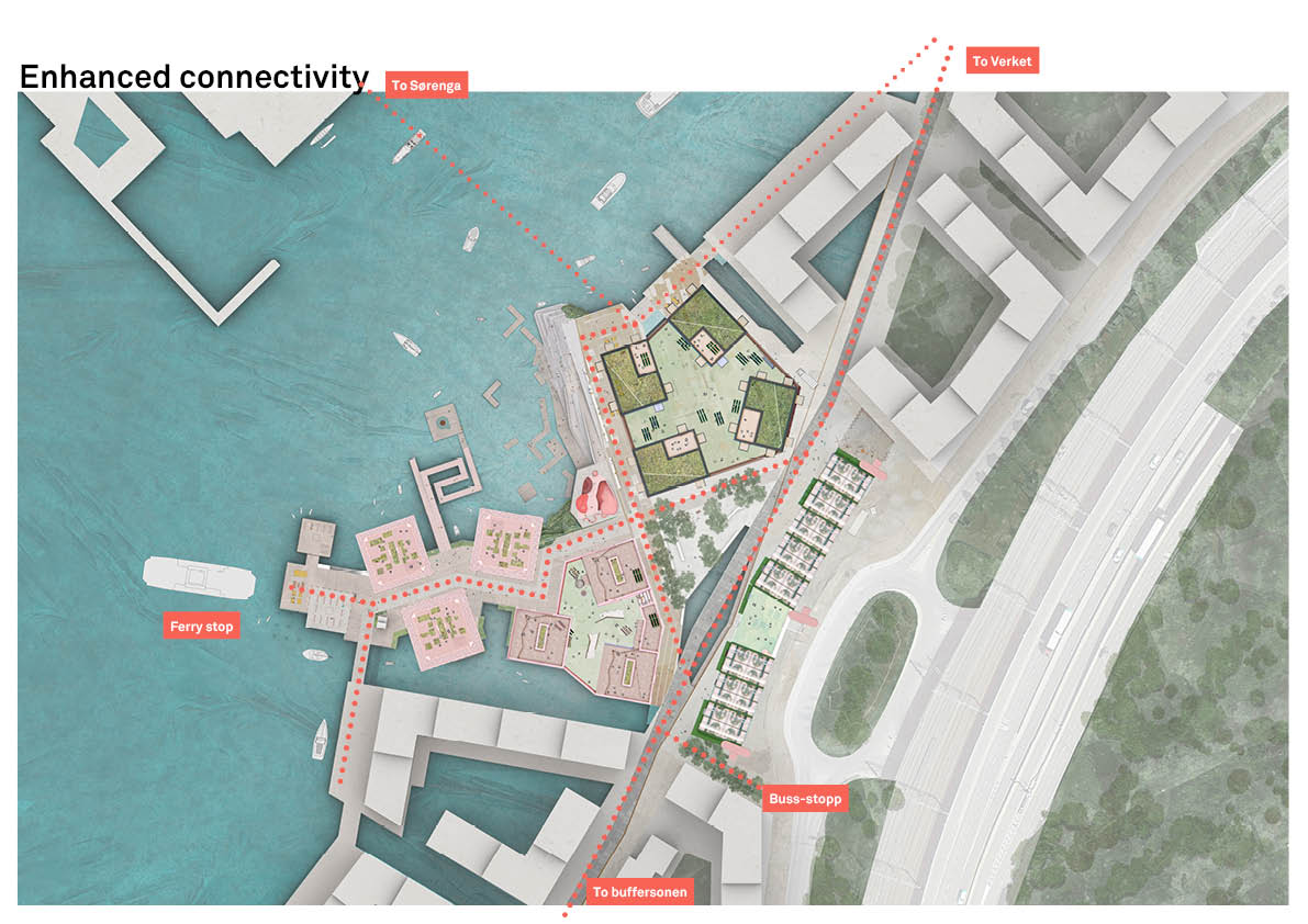 Grønlikaia is envisaged as a vibrant new neighbourhood. Besides new homes, the development offers a mix of public and private spaces such as a market place and small-scale culture and commercial venues.