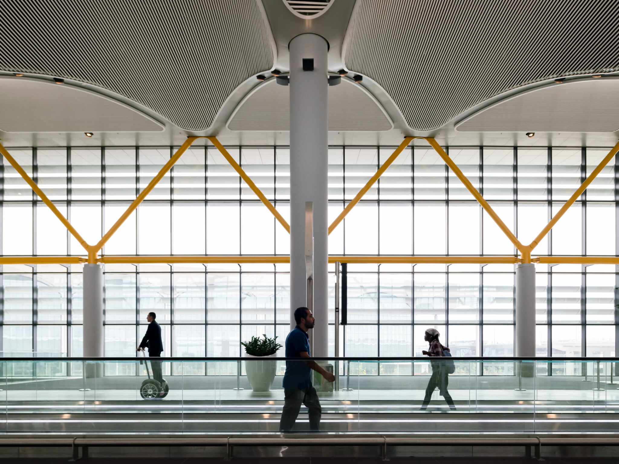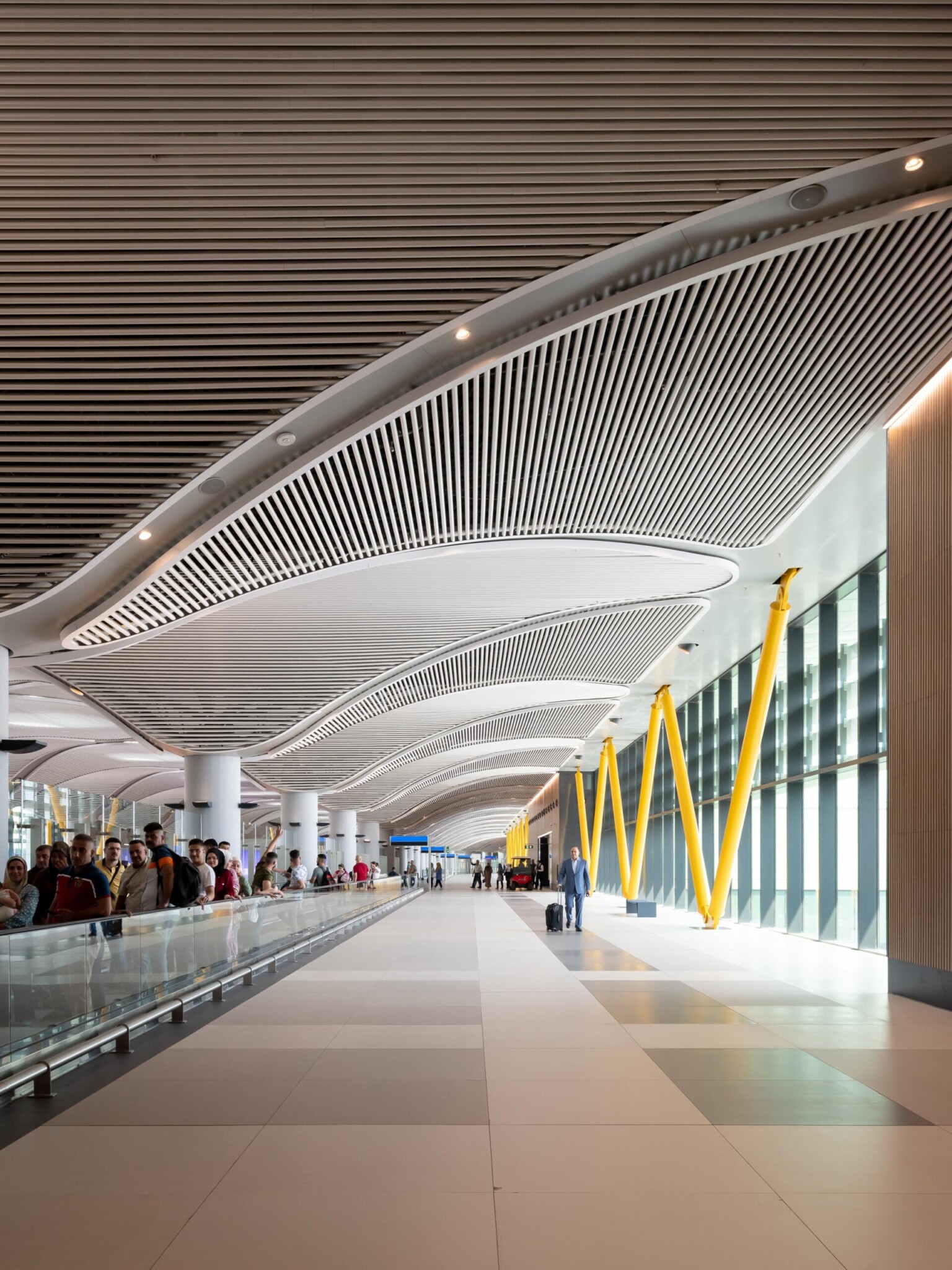 The space at the airport – 1.4 million square metres in total – is very generous, with transitional zones created to break up the journey between drop-off and boarding gate.