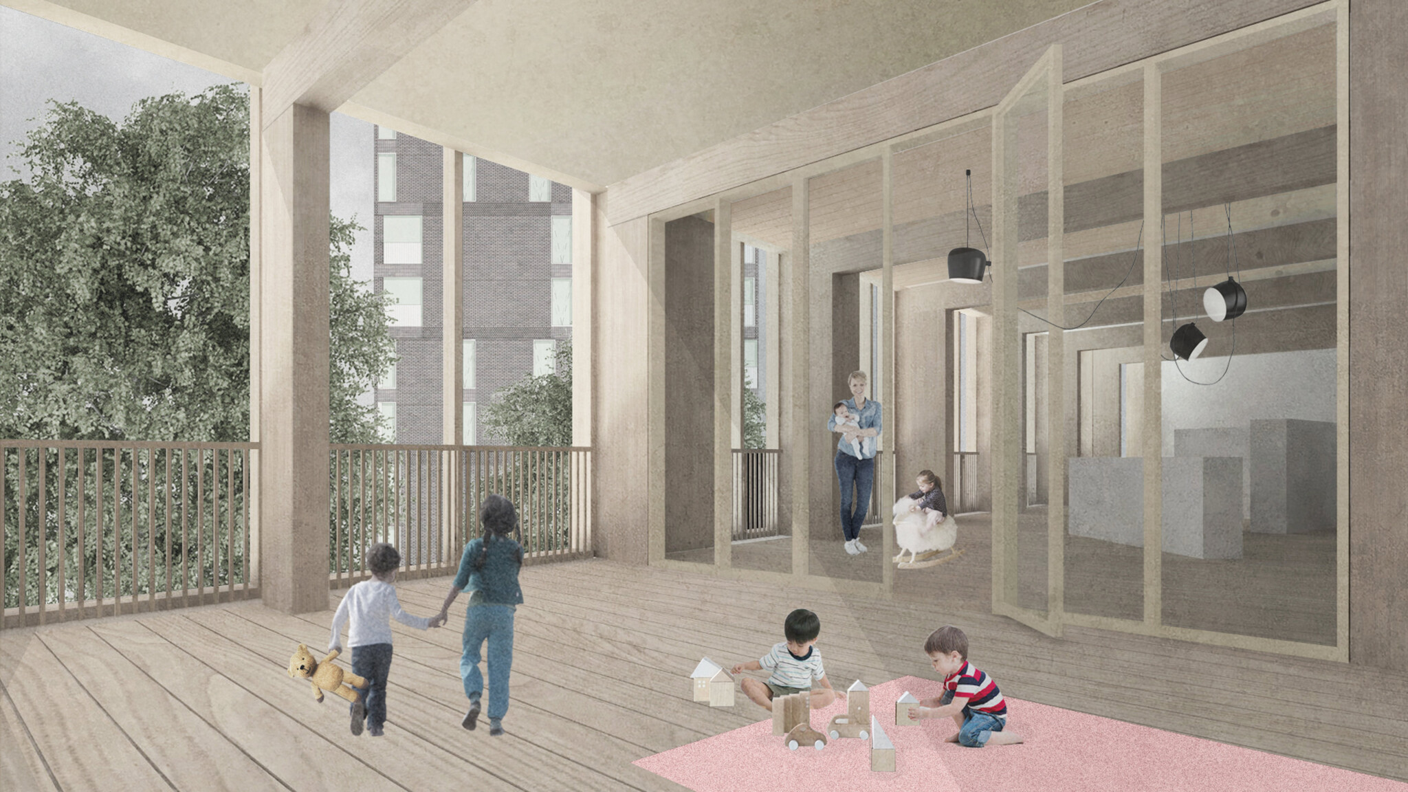 A fully accessible community building on the boundary of the King's Cross masterplan with an innovative timber structure.Haptic GreenLivePlayTimberUKWork