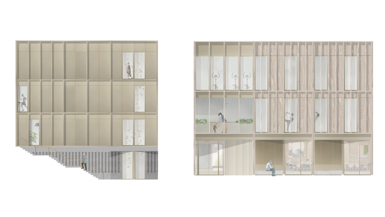 Our brief was to create a community building that would be fully accessible to all of its neighbours, with a mix of uses including a café, gym studios and a creche.