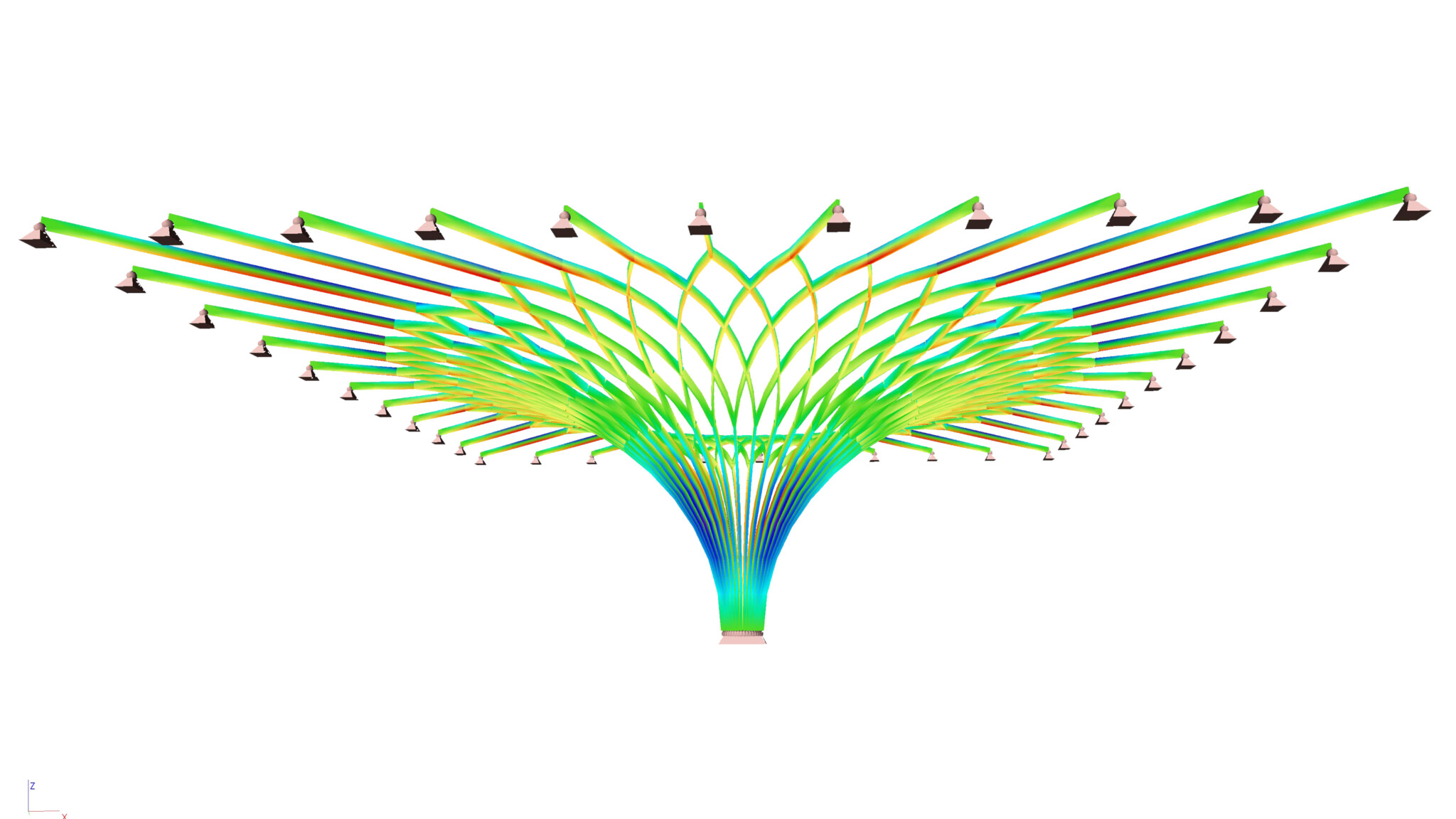 Inside, the ‘flower petal’ columns support a series of vaults and create a sense of directionality, leading passengers through the airport from landside to airside.