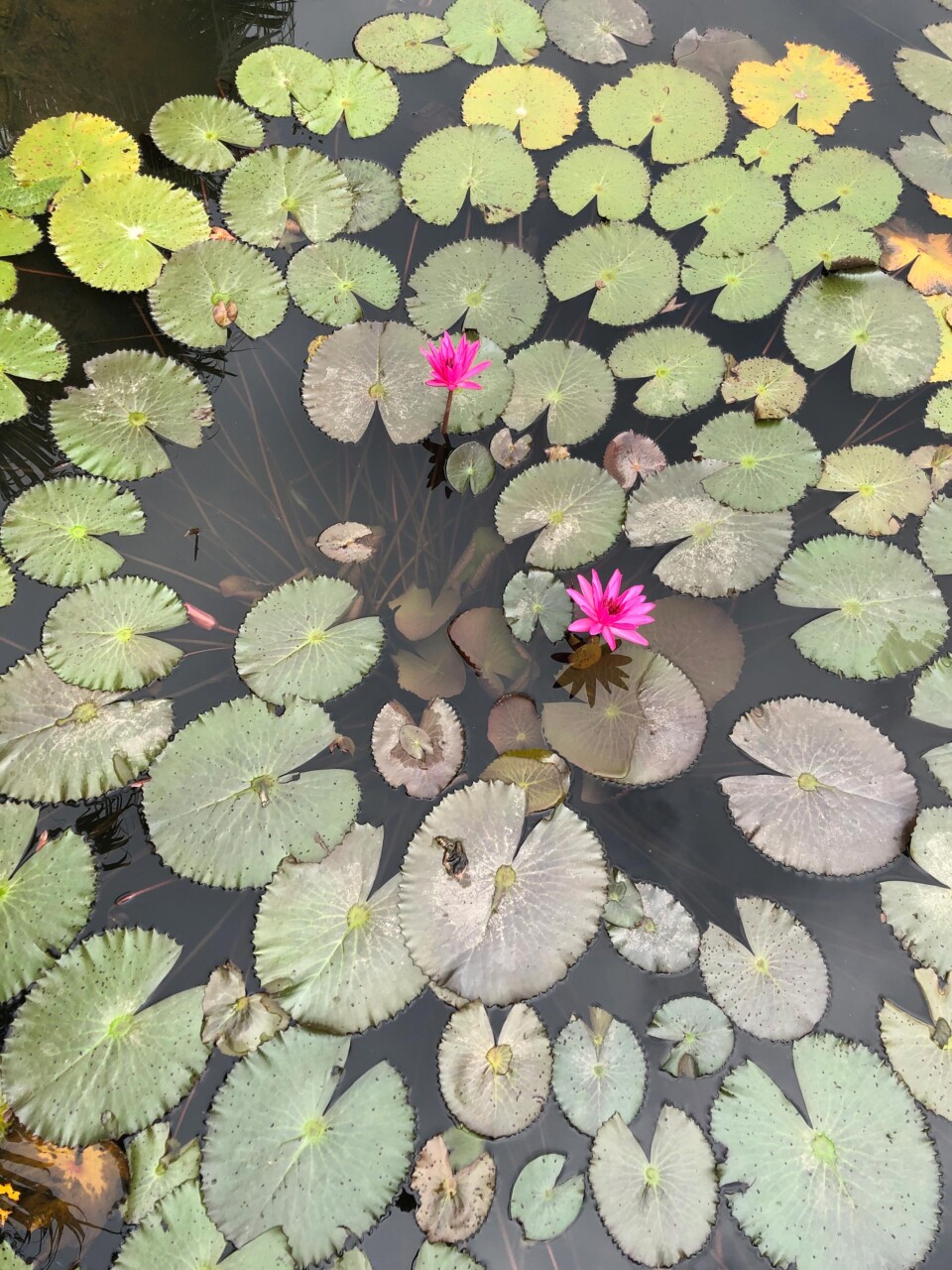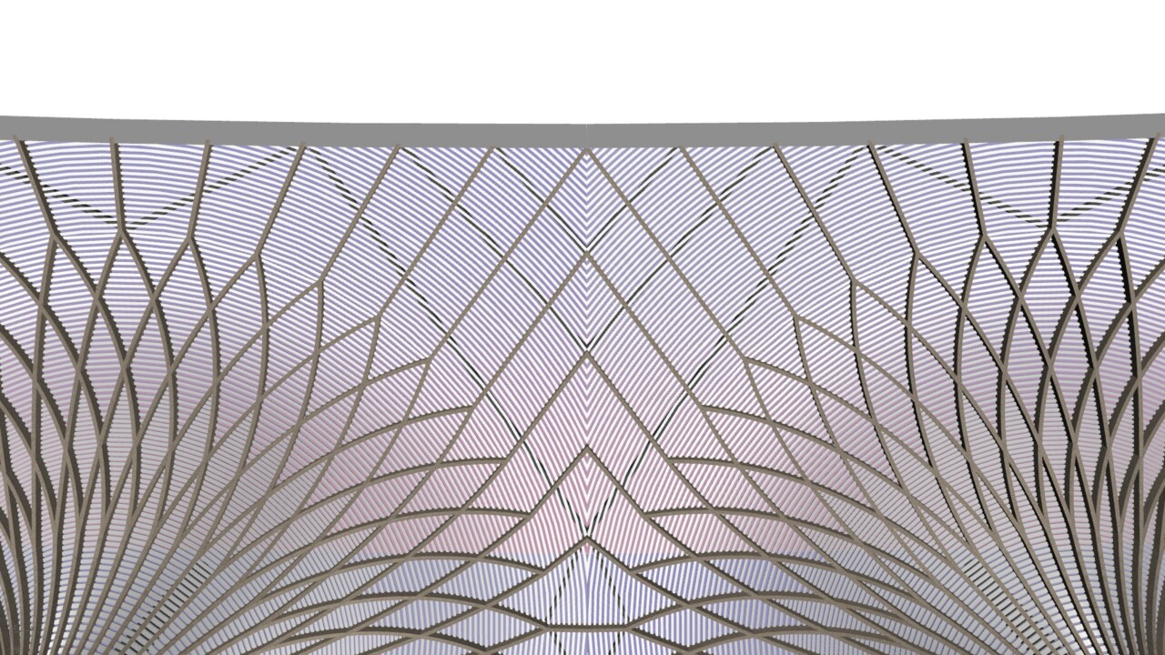 Just as a lotus flower has layers of petals of varying colours, the roof is also layered and slatted, filtering the light with a discreet geometric pattern and a subtle range of colours from whites to pinks to purple.