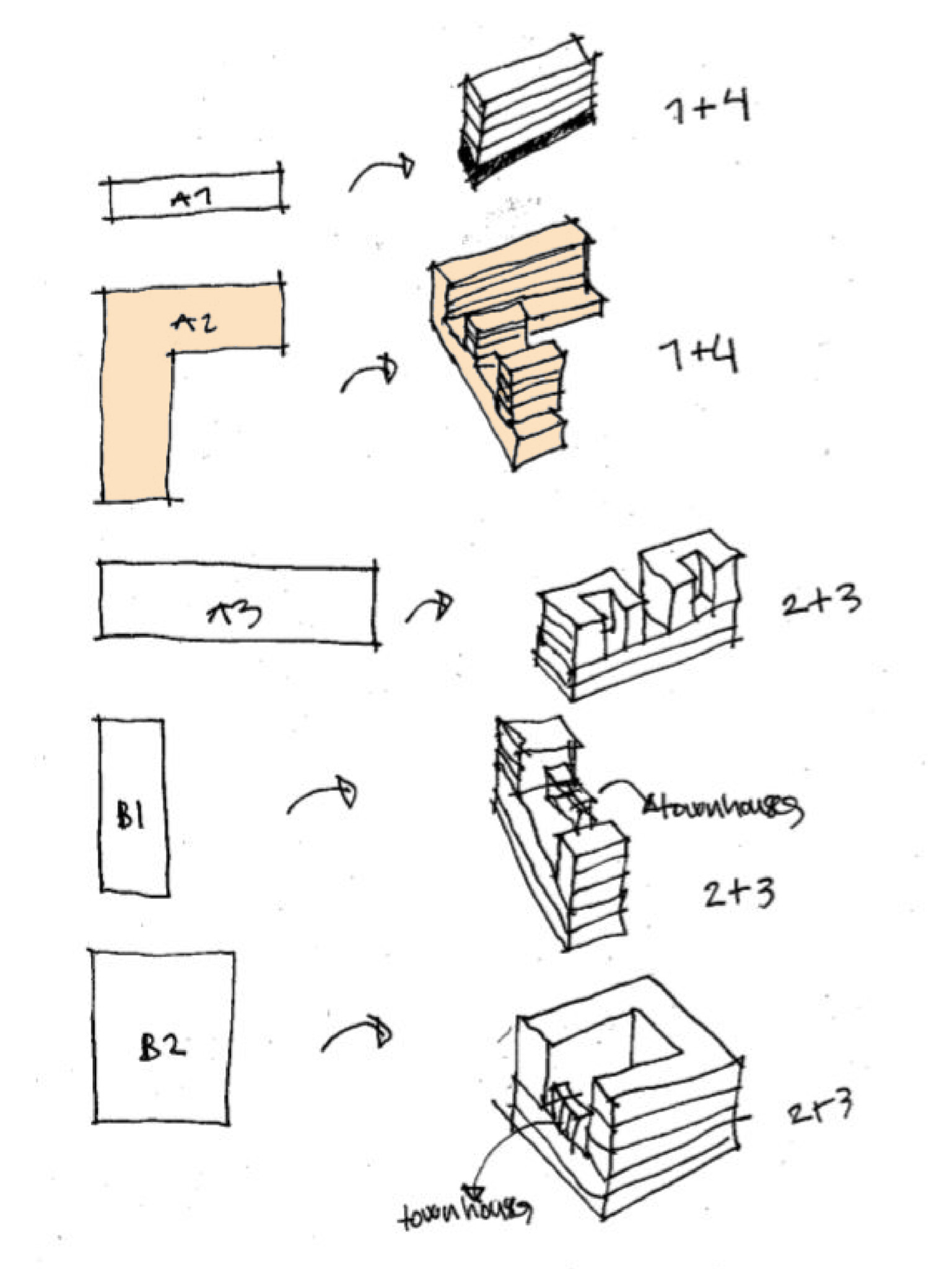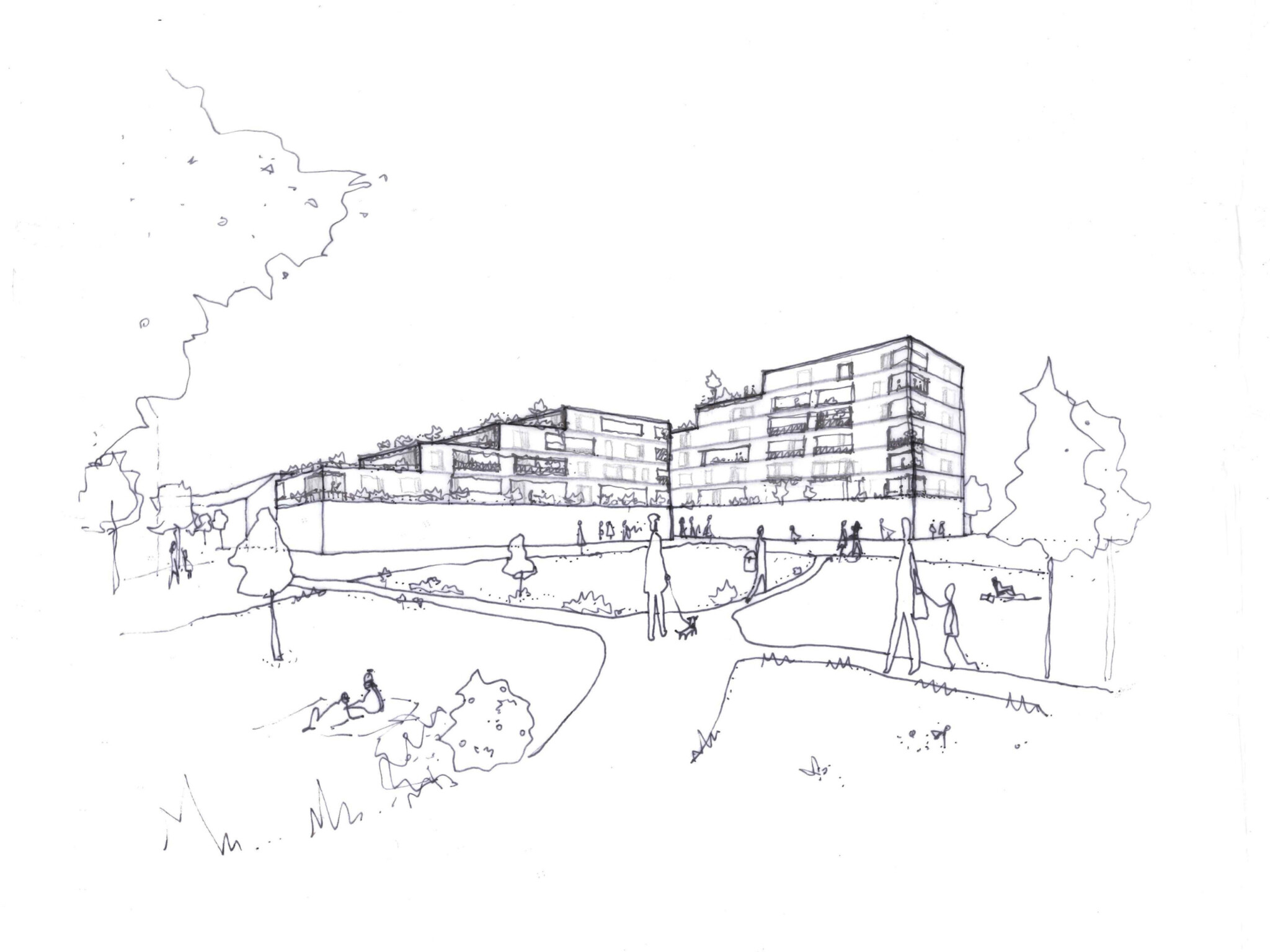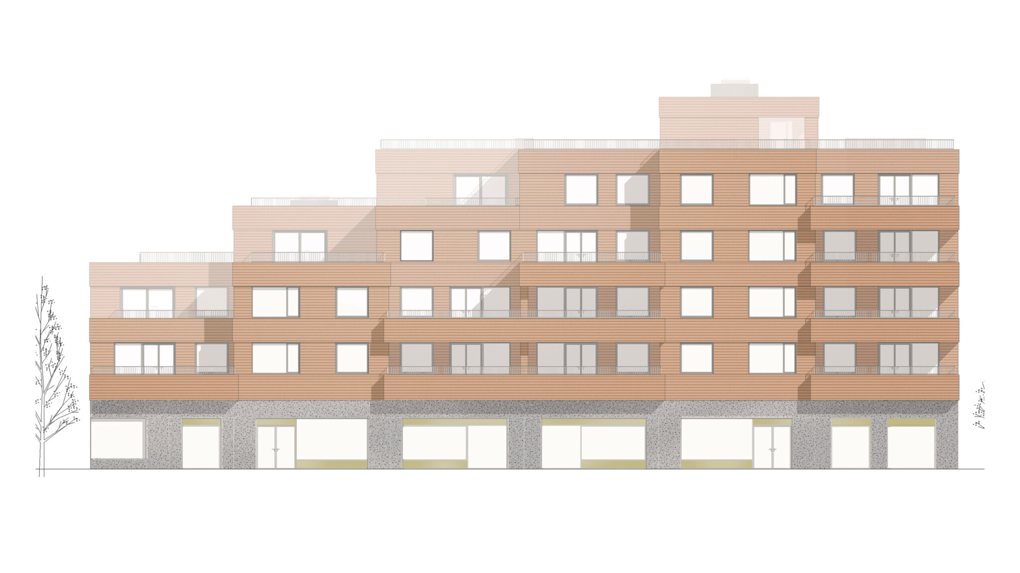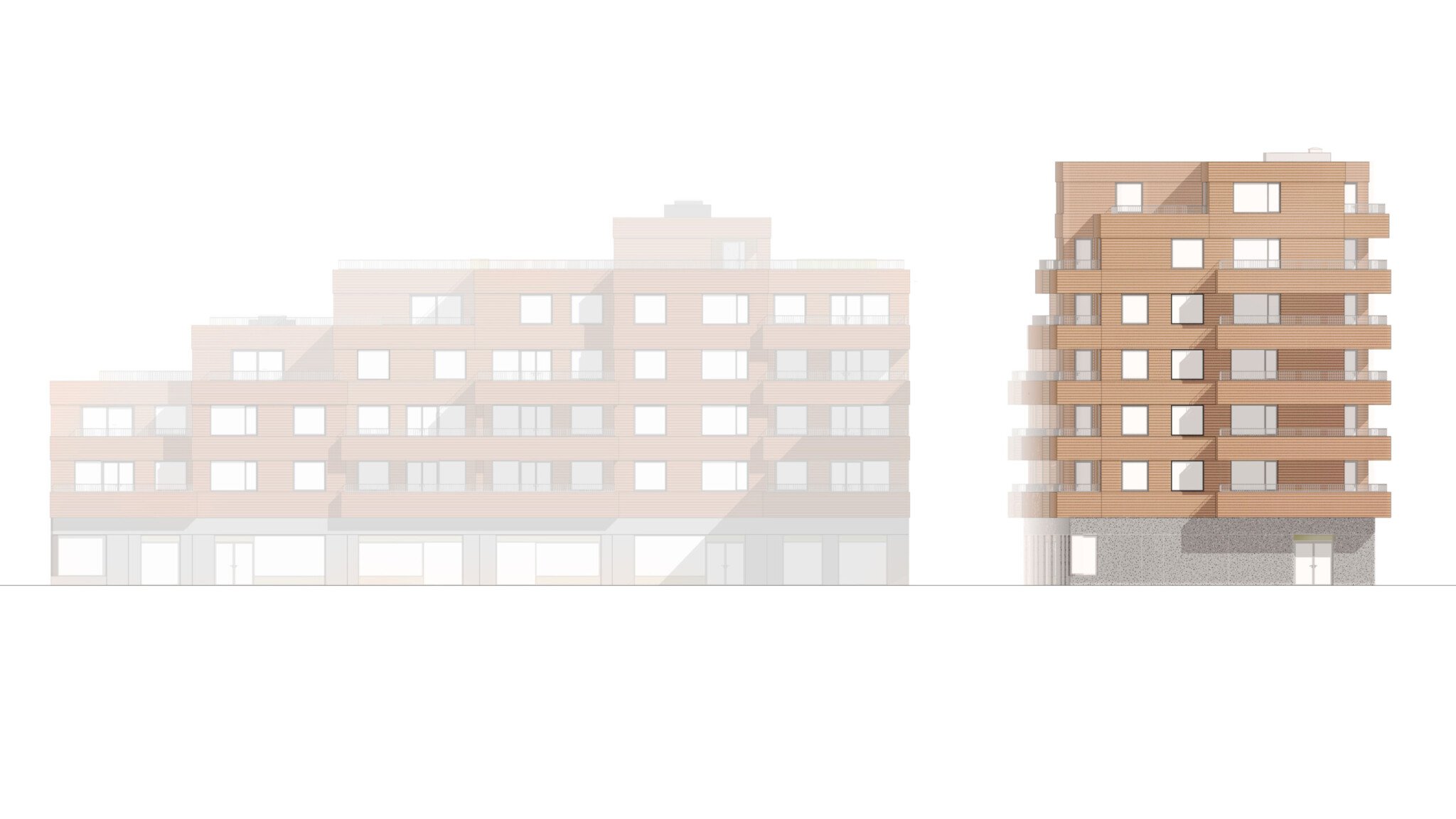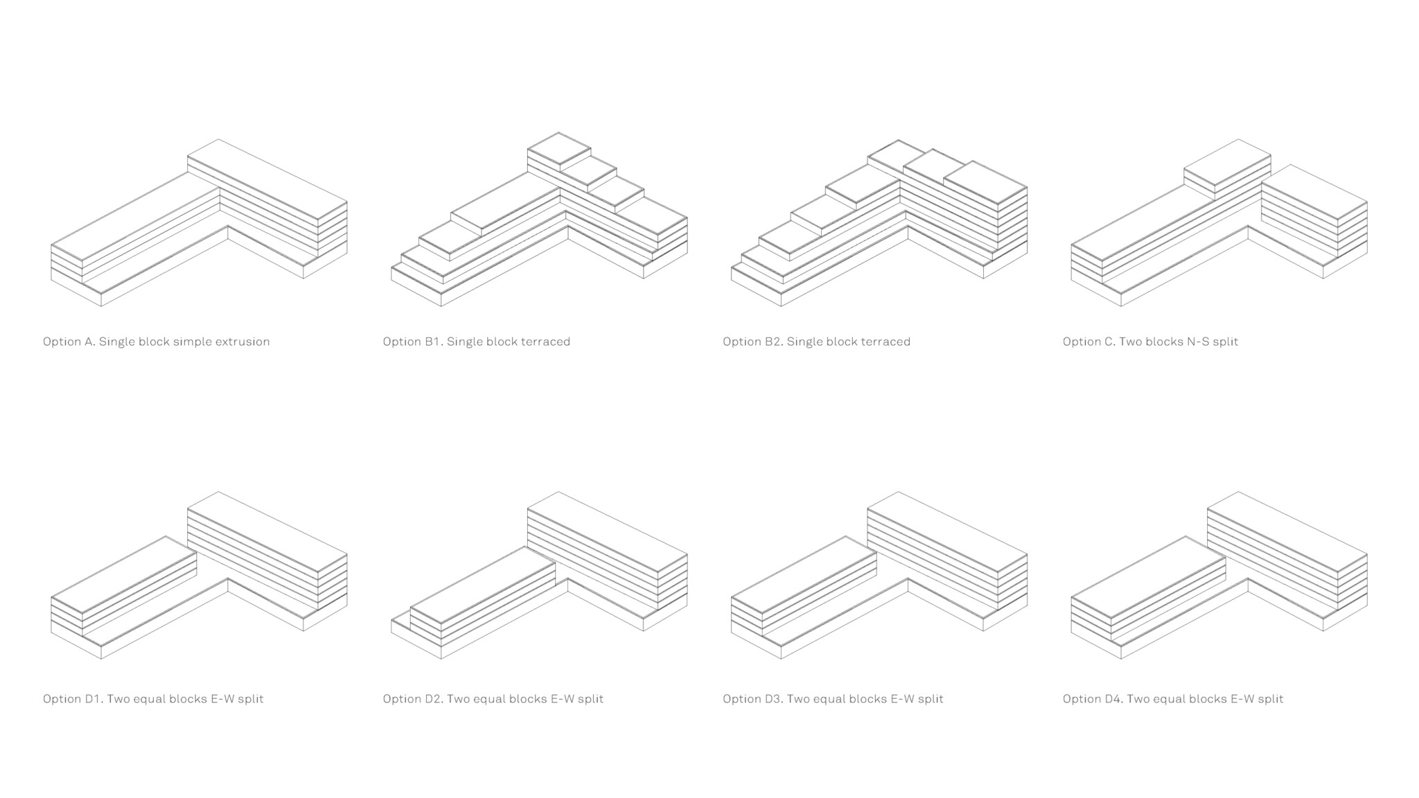 Following in-depth sun analysis, we reached a stepped form not only gives better quality apartments, but less shadowing to the nearby park than a regular apartment block.