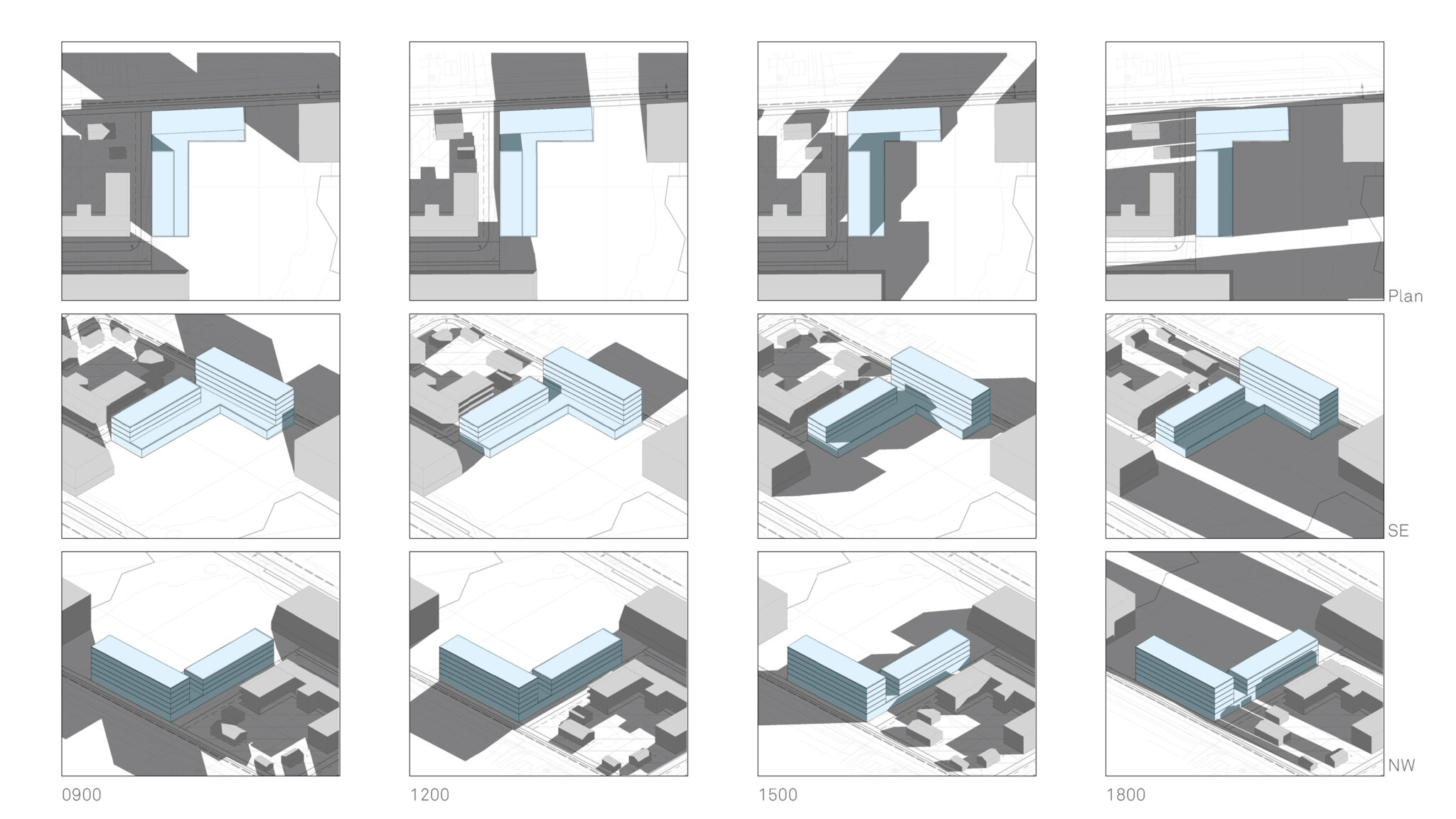 A key challenge was negotiating the height of the massing, and potential overshadowing. To gain approval from the municipality, volumes removed from the building’s lower levels were compensated in an extra level at the top.