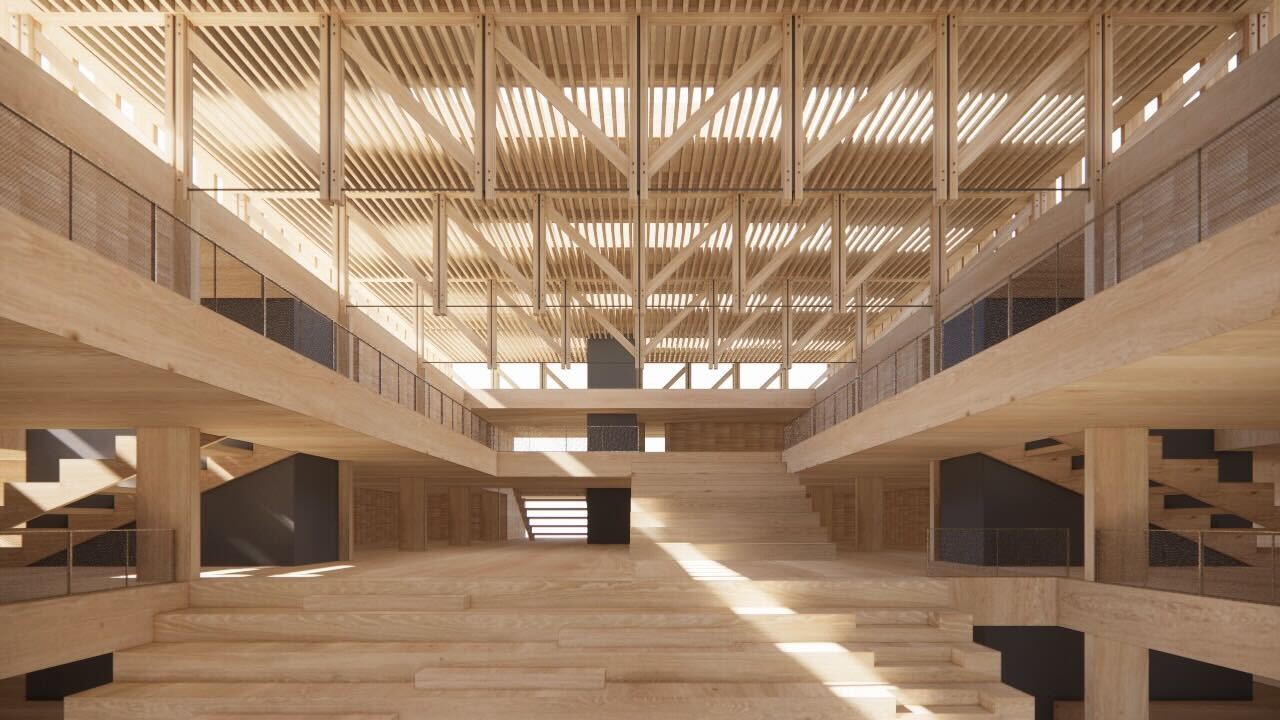 A bold new landmark building on the site of Oslo’s decommissioned airport, for an emerging neighbourhood in FornebuLiveNorwayPlayTimberUrban